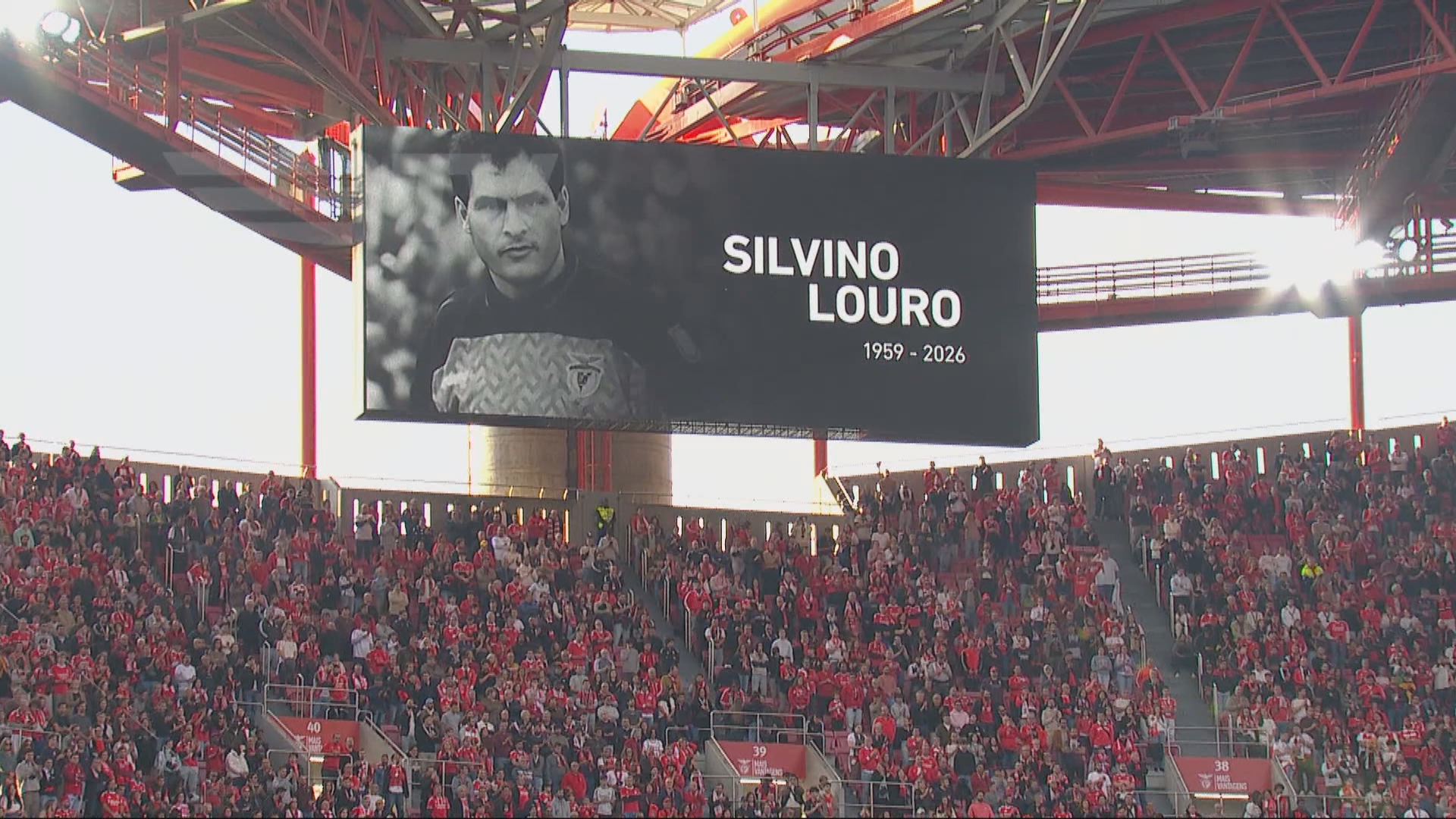 Cumpre-se um minuto de silêncio no Estádio da Luz, em homenagem a Silvino Louro, que faleceu na passada quinta-feira.